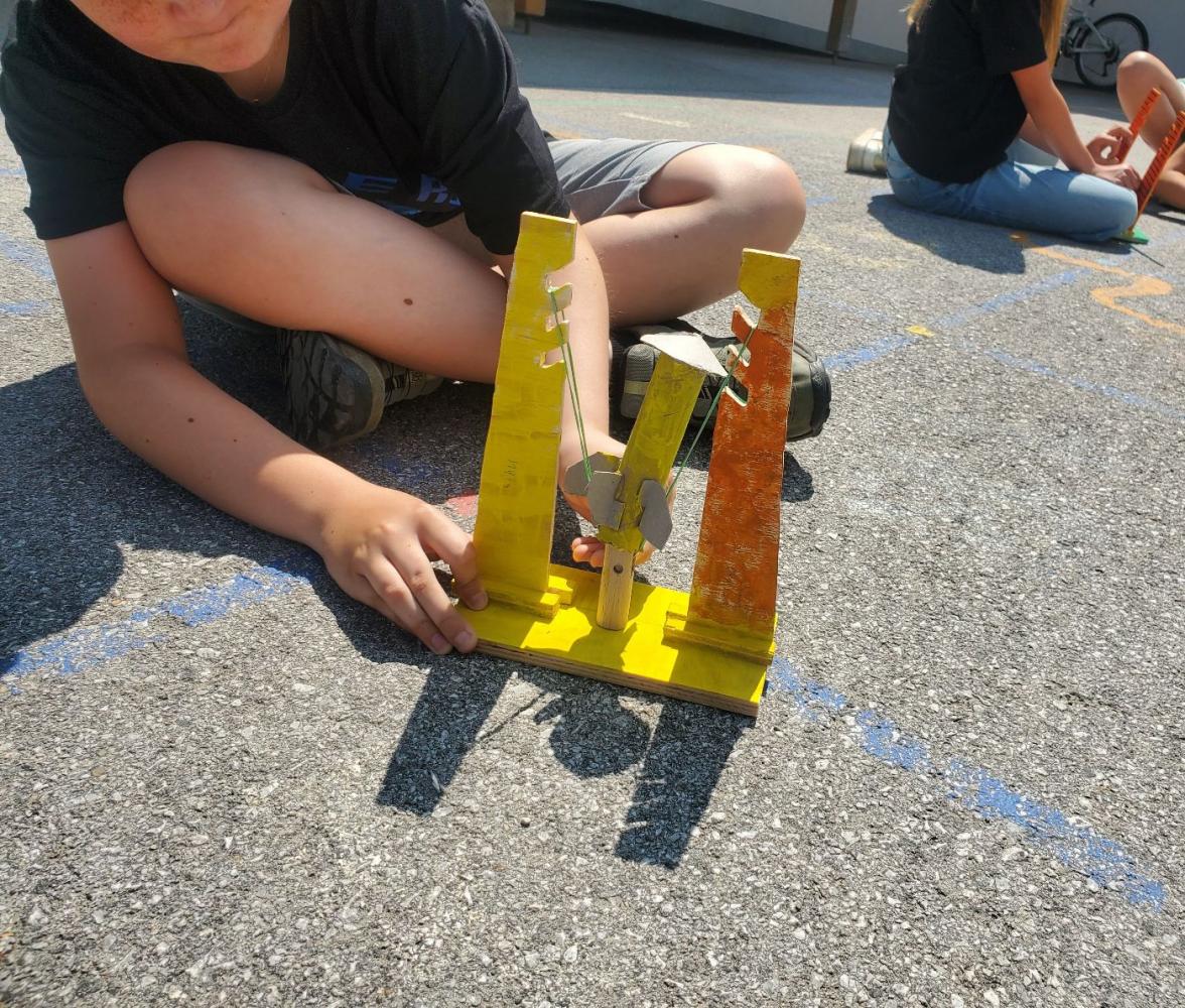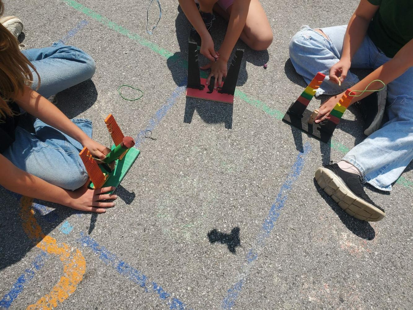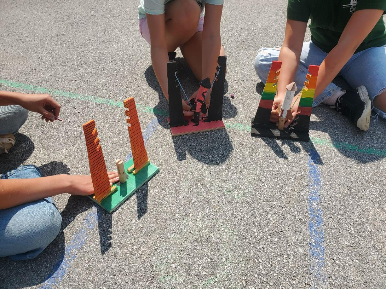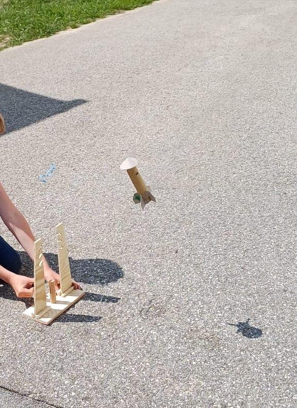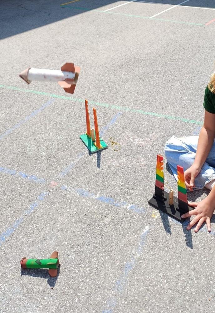 Ein spannendes Projekt begleitete uns über einige Wochen im Werkunterricht: Wir bauten Raketen mit dazu passenden Startrampen. Dafür mussten wir zum Einen eine Rakete aus einer Kartonrolle herstellen, zum Anderen wurde aus Holz eine Startrampe gebaut. Hier mussten wir vor dem Sägen ganz genau messen und aufzeichnen. Nachdem endlich alles fertig war, nutzten wir einen schönen Dienstag um die Startrampen zu testen. Dabei hatten wir unterschiedliche Gummibänder zur Auswahl, die uns unterschiedliche Ergebnisse lieferten. Als jeder das für sich beste Gummiband gefunden hatte, ließen wir unsere Raketen (fast) bis zum Himmel fliegen.